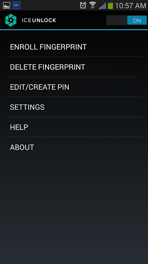 Just install the ICS unlock fingerprint scanner and then set up your fingerprint within the app select finger and roll to begin the scanning process .